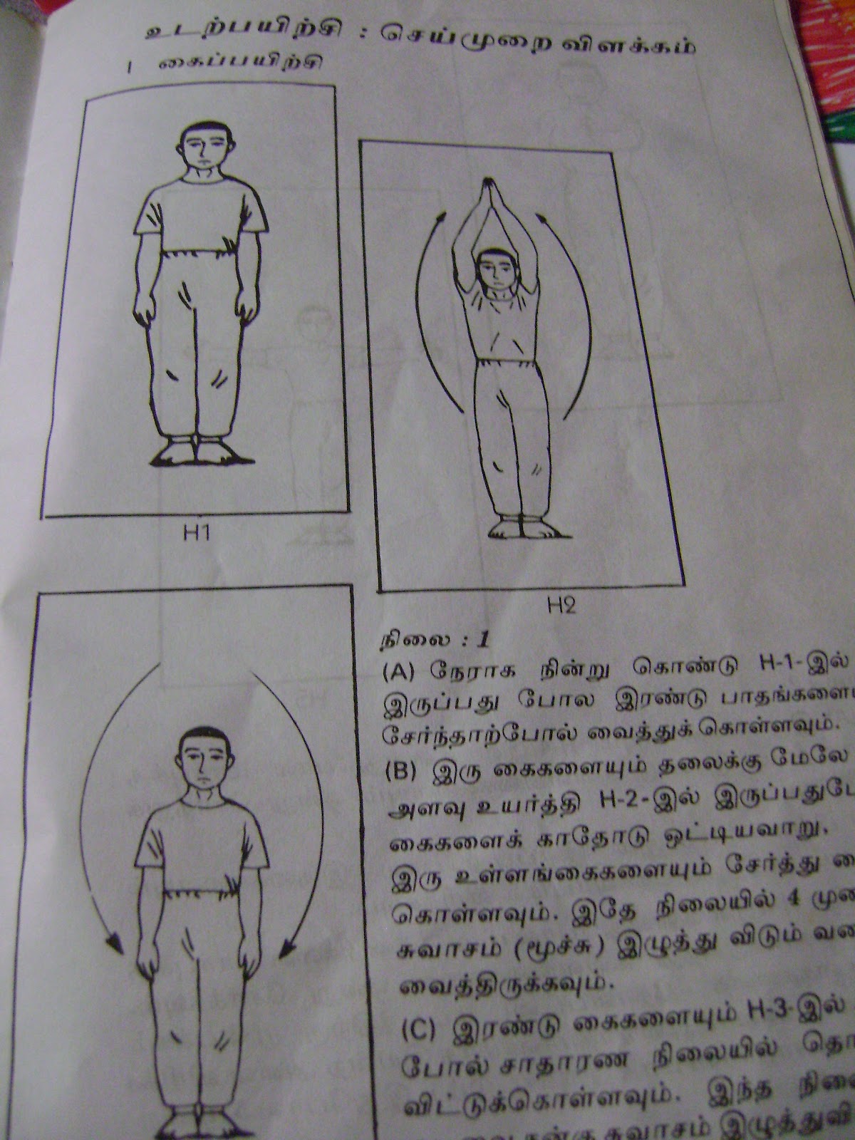 Follow the postures in the pictures.it hardly takes five minutes to do all of these but its greatly refreshing for the body and mind.Exercise everyday for a healthy mind and body.my grandpa used to do this even when he was in his 80 's he was active all thriough his life.This picture is taken from the old book he had .he used to give copies of this book to every one he knew for free but now that he not with us anymore I just wanted to share this somewhere useful to everyone and that way I can save a copy for myself .This exercise greatly relaxes the body so it advised to be done in the morning and at night.For a good health , exercise regularly.